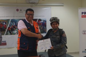 El curso se desarrolló en el marco del programa PREPARE, el cual fue financiado por el Buró de Asistencia Humanitaria de la Agencia de los Estados Unidos para el Desarrollo Internacional (USAID/BHA) y fue ejecutado por Miyamoto Internacional, cuyo propósito es apoyar para consolidar el mecanismo de acreditación del nivel liviano.