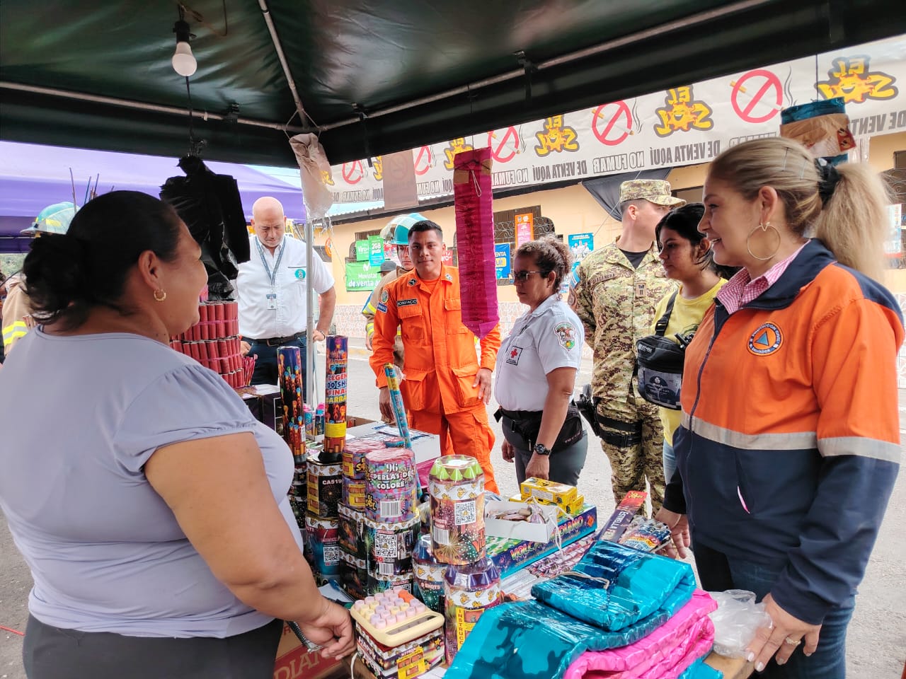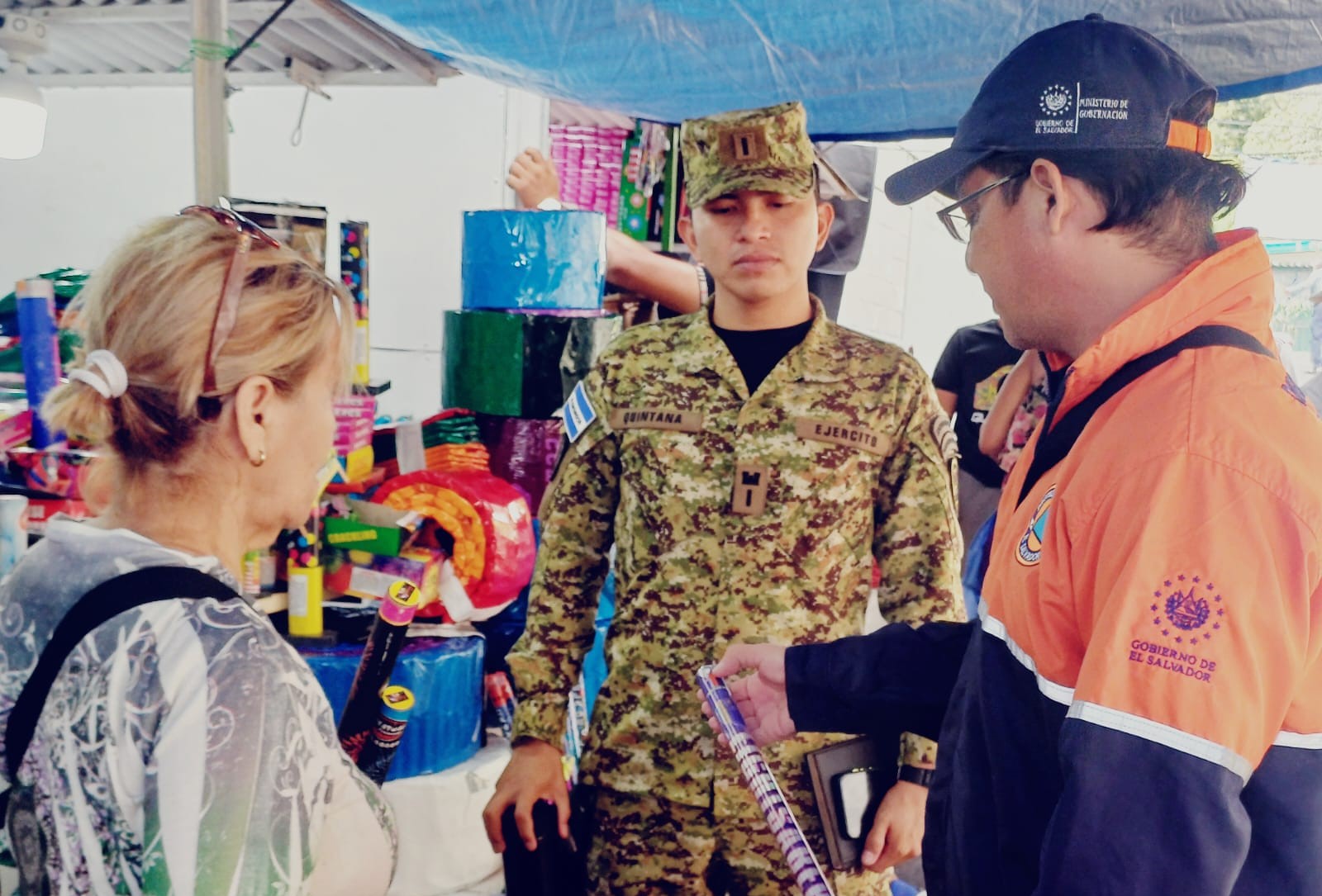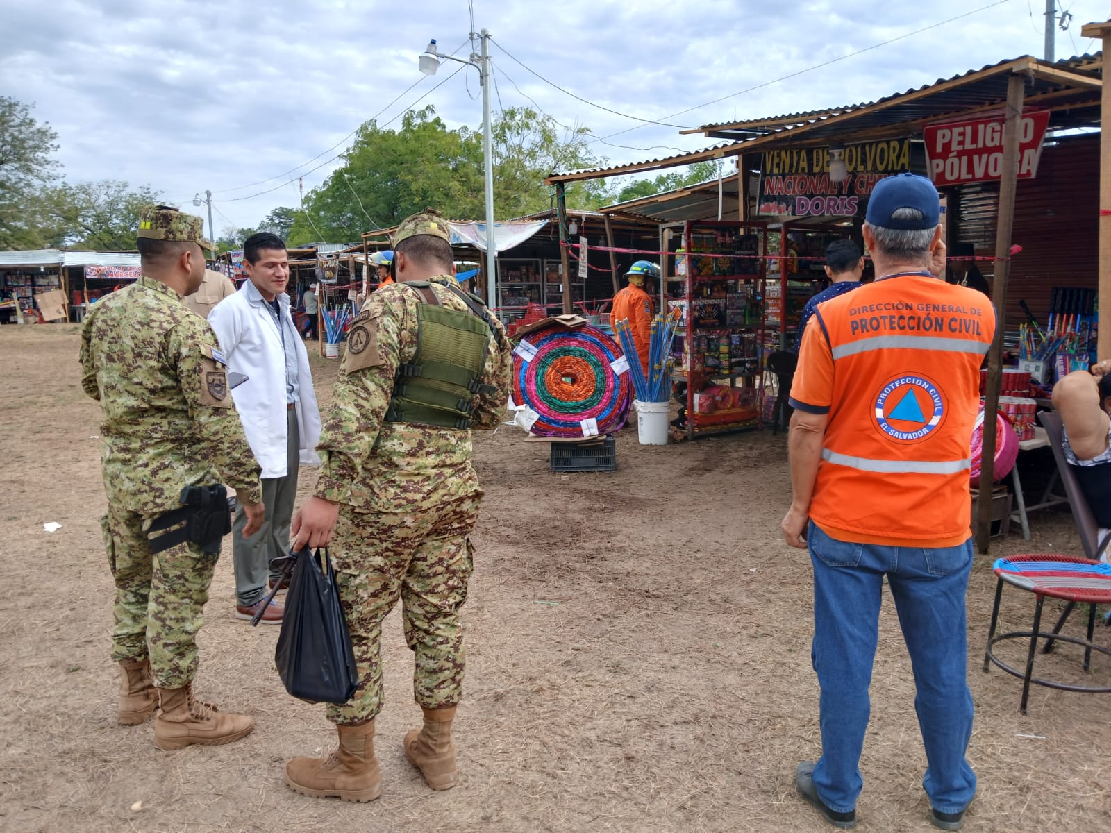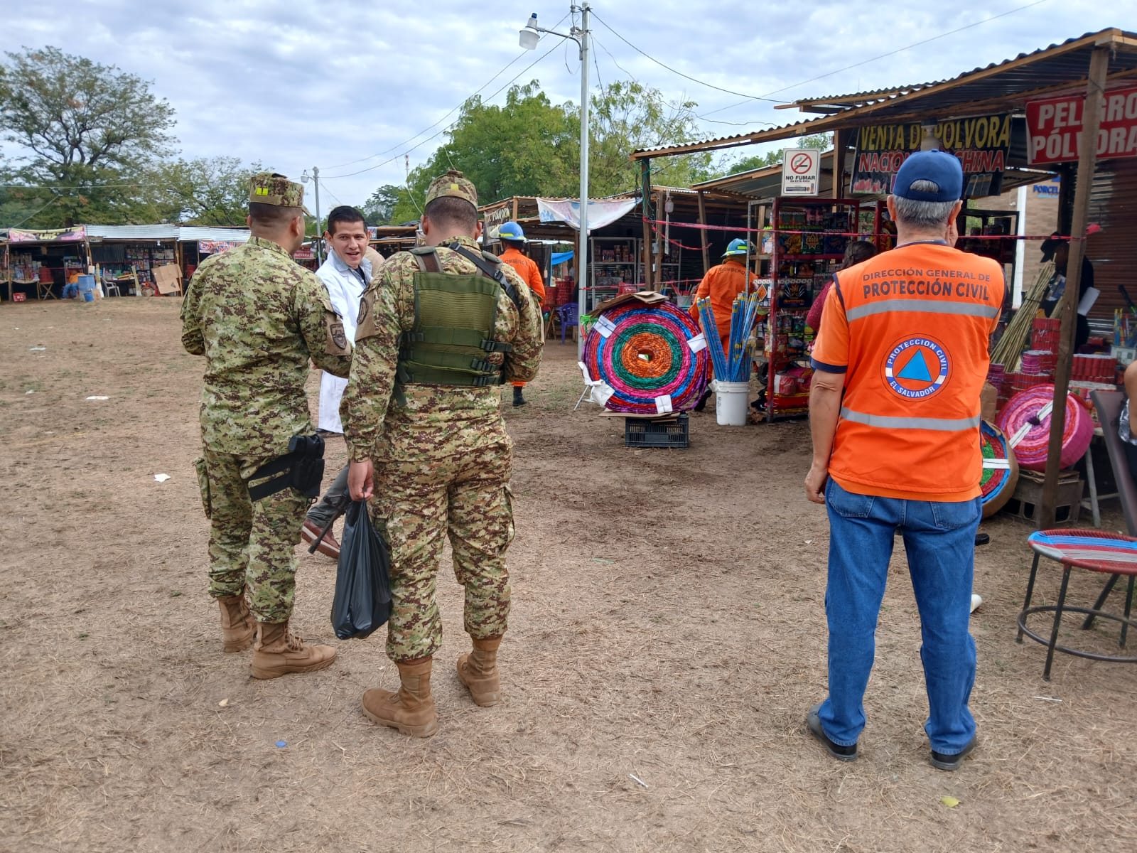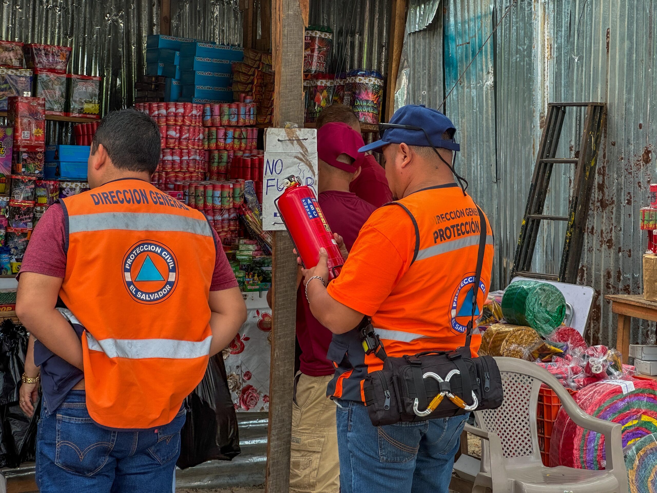 De esta forma hay presencia de técnicos de la Dirección General de Protección Civil, Cuerpo de Bomberos, Policía Nacional Civil, División de Armas y Explosivos de la Fuerza Armada de El Salvador y representantes de las Comisiones Departamentales y Municipales de Protección Civil quienes realizan la verificación de productos pirotécnicos en comercios que los distribuyen.