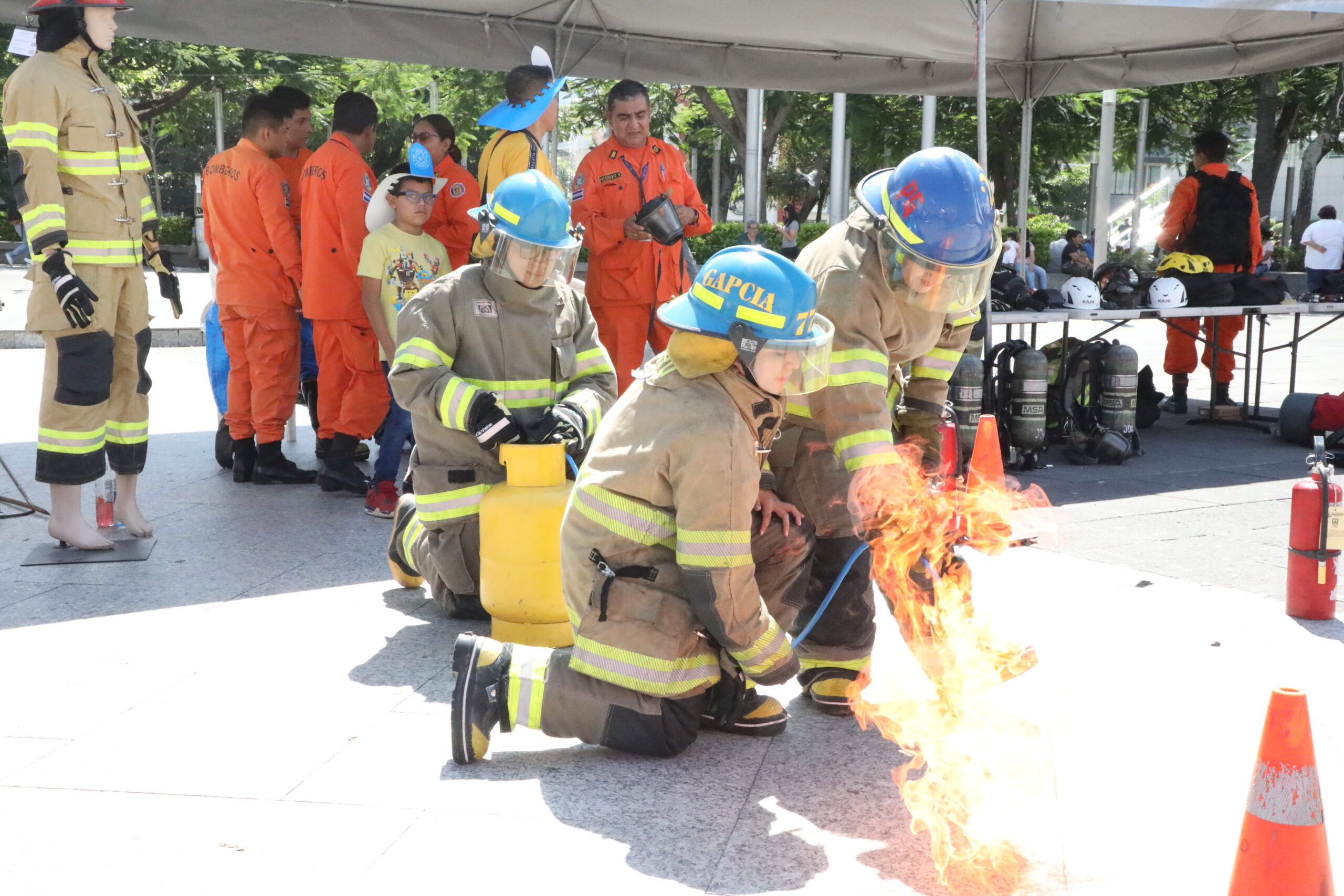 El Cuerpo de Bomberos mostró entre otros objetos empleados para la atención de emergencias el polipasto, equipo de rescate en incendios estructurales y cómo controlar conatos de incendio.