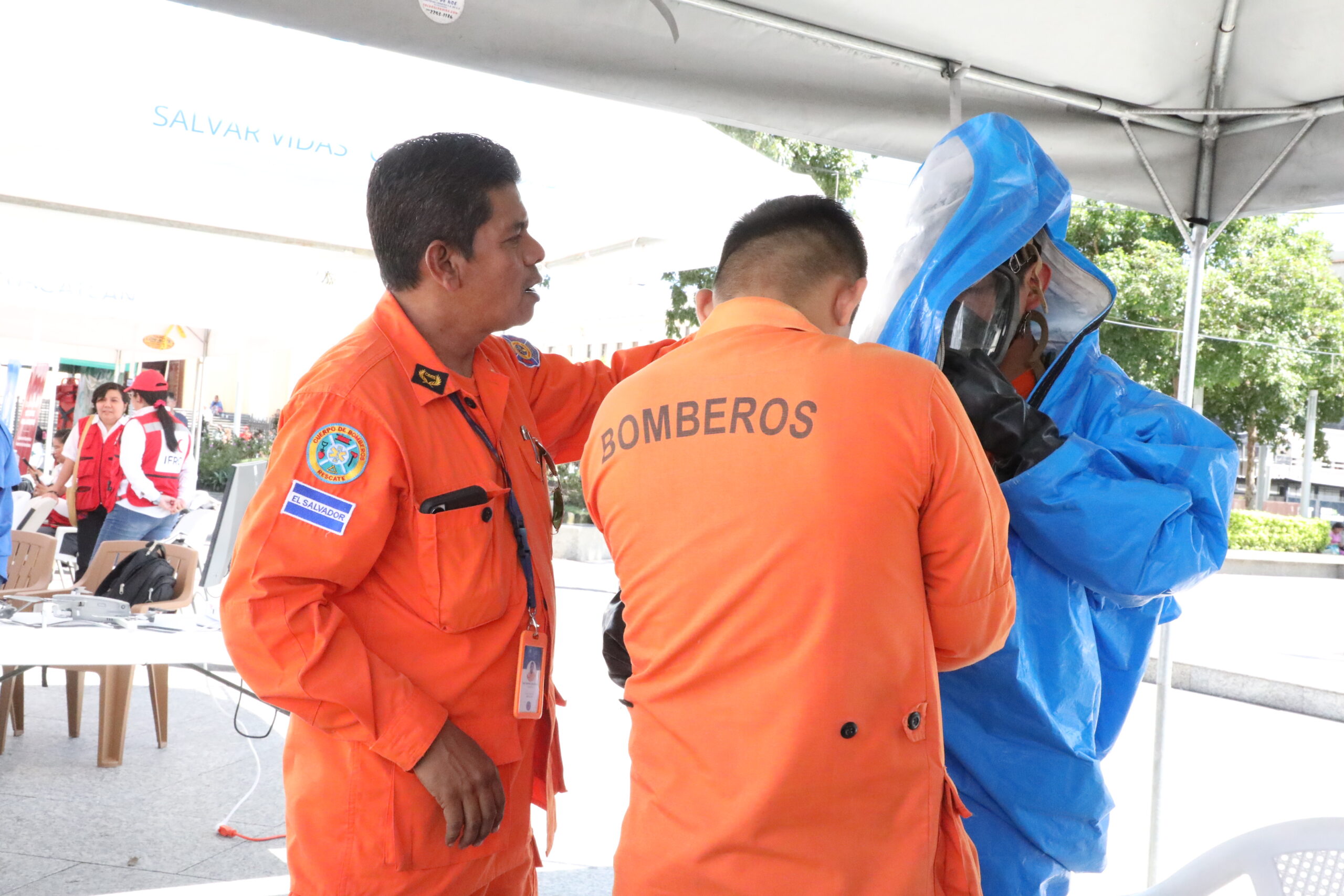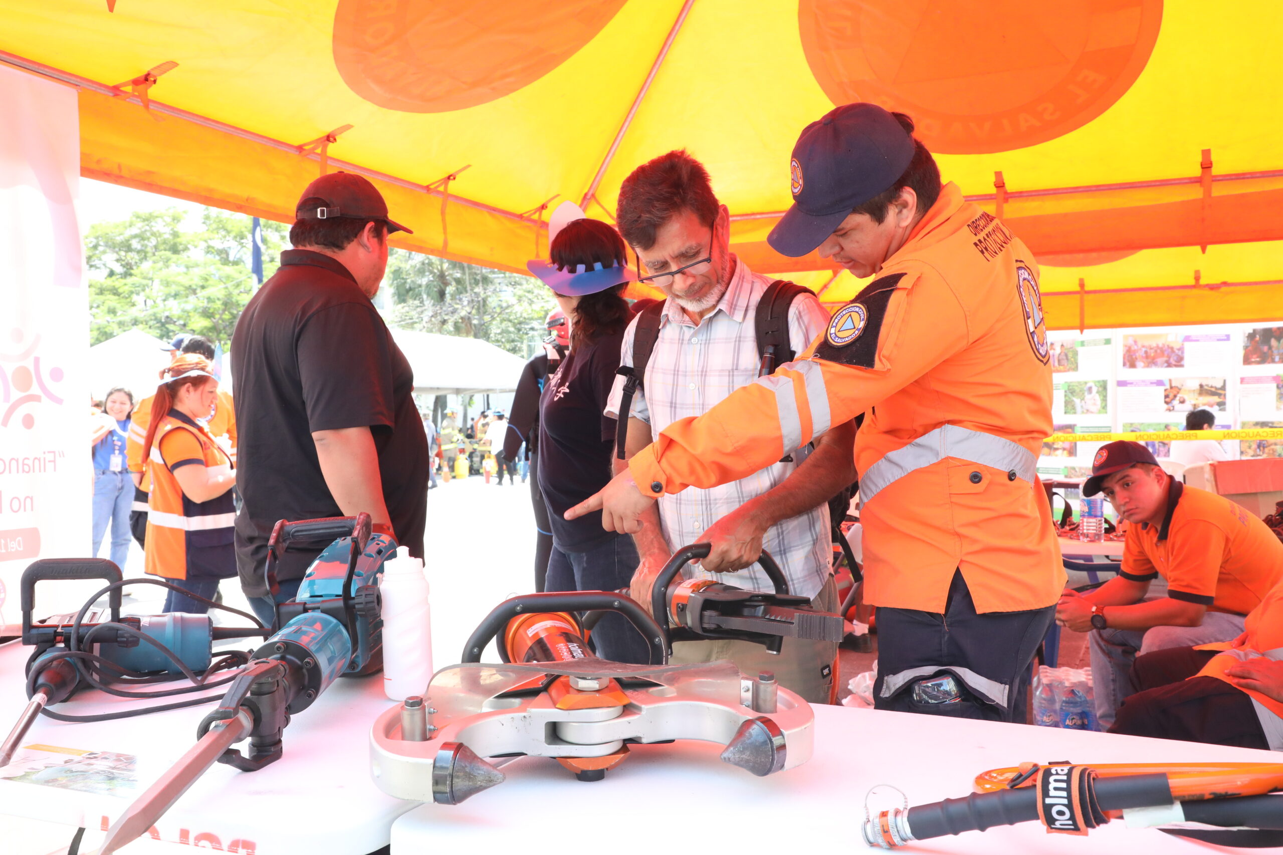 Cruz Verde Salvadoreña, expuso su equipo de rescate vertical y vehicular y a la Unidad USAR donde emplean herramientas como: motosierra, rotomartillo y trosadoras.
