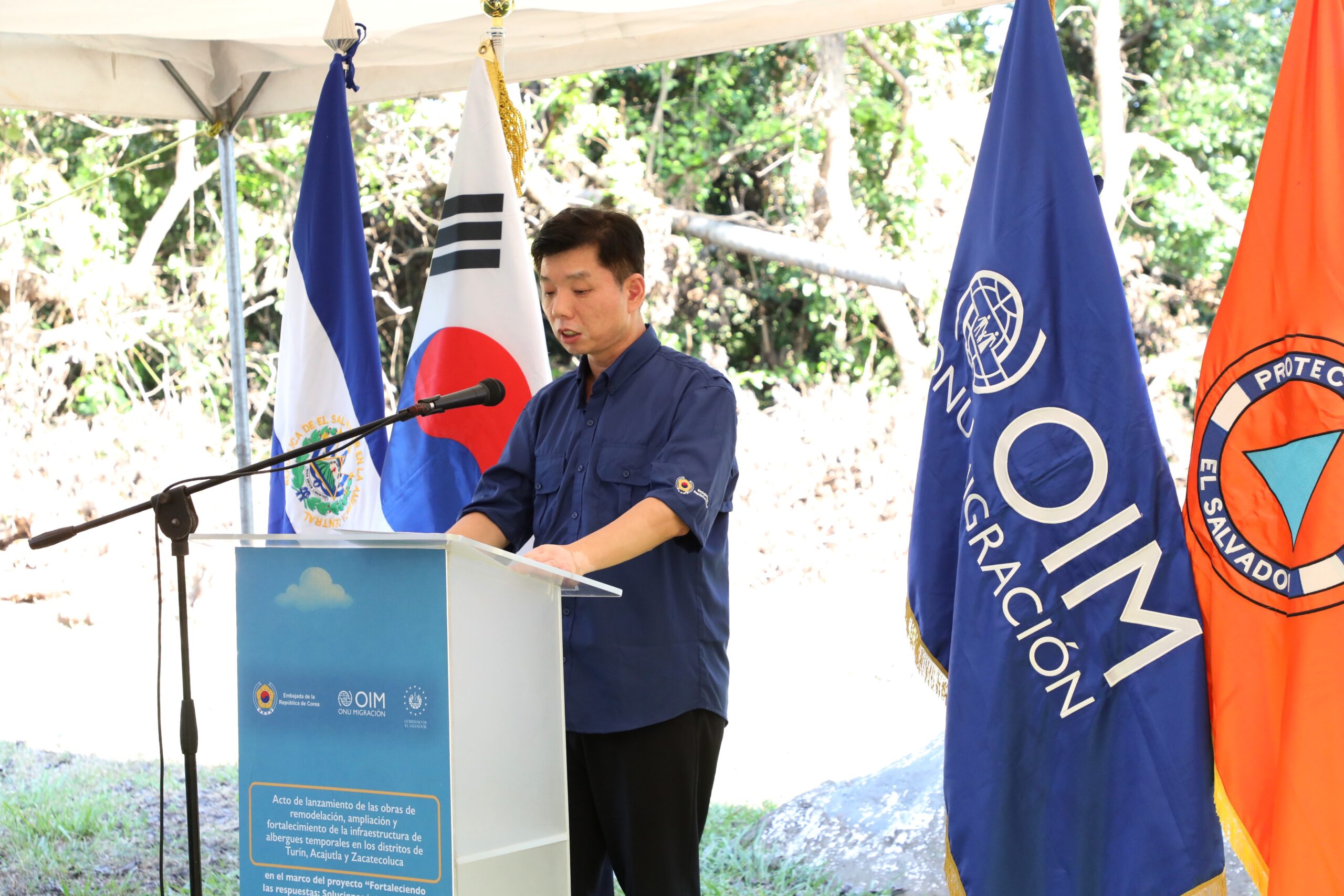 Este día, iniciaron las obras de remodelación, ampliación y fortalecimiento de la infraestructura de albergues temporales en tres importantes distritos del país: Turín, Acajutla y Zacatecoluca en el marco del proyecto “Fortaleciendo las respuestas: Soluciones integrales para desplazados internos, retornados y comunidades”, ejecutado por la Organización Internacional para las Migraciones (OIM) y financiado por la Embajada de la República de Corea con la colaboración del Ministerio de Gobernación y Desarrollo Territorial; a través de la Dirección General de Protección Civil y la Dirección de Albergues.
