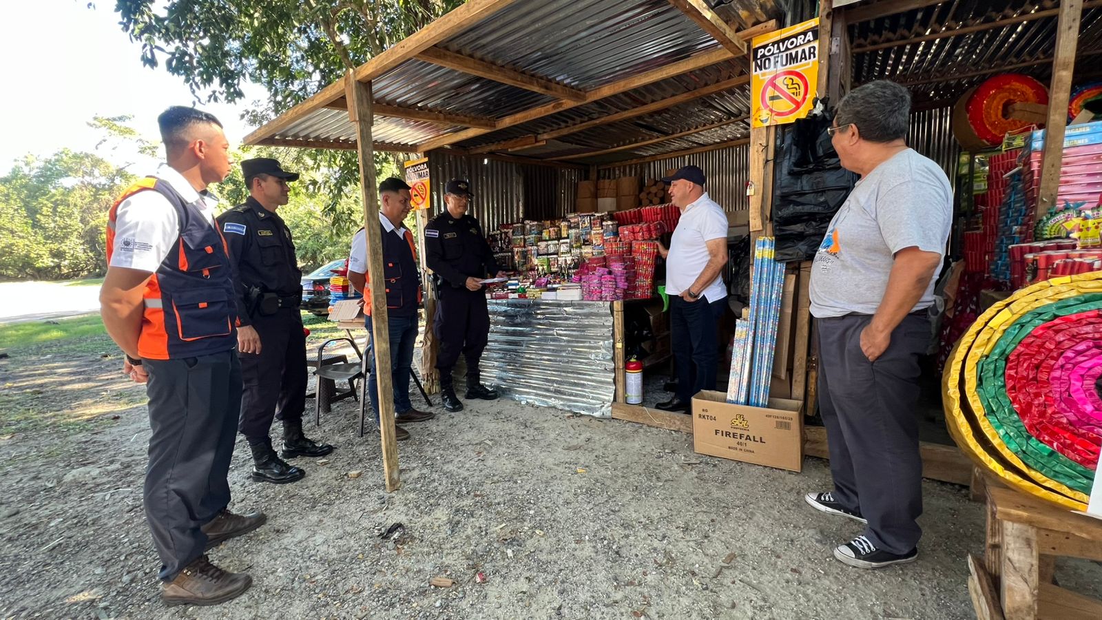 Durante el recorrido se verificó el cumplimiento de las medidas de seguridad, la vigencia de permisos y licencias, la inexistencia de pólvora prohibida, así como la disponibilidad y buen estado de extintores y barriles con agua. Estas acciones fueron acompañadas por personal municipal, Policía Nacional Civil (PNC), Ministerio de Salud (MINSAL) y del Centro Nacional de Tecnología Agropecuaria (CENTA).
