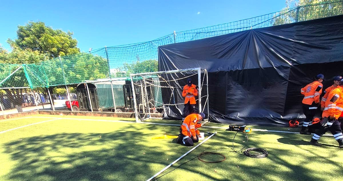 La intervención se llevó a cabo en la comunidad Apancino, ubicada en el distrito de San Salvador Este, donde tres técnicos especializados en radiocomunicación —dos de Protección Civil y uno de Cruz Roja— realizaron la programación e instalación de equipo VHF en el sistema radial institucional.