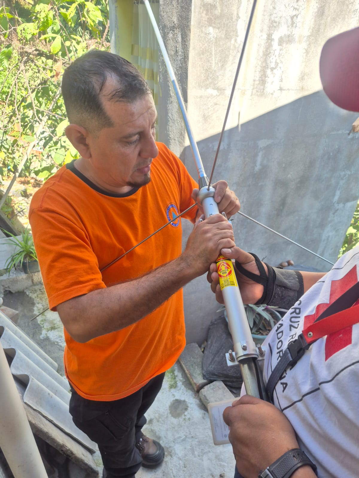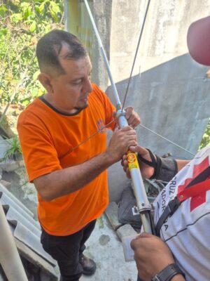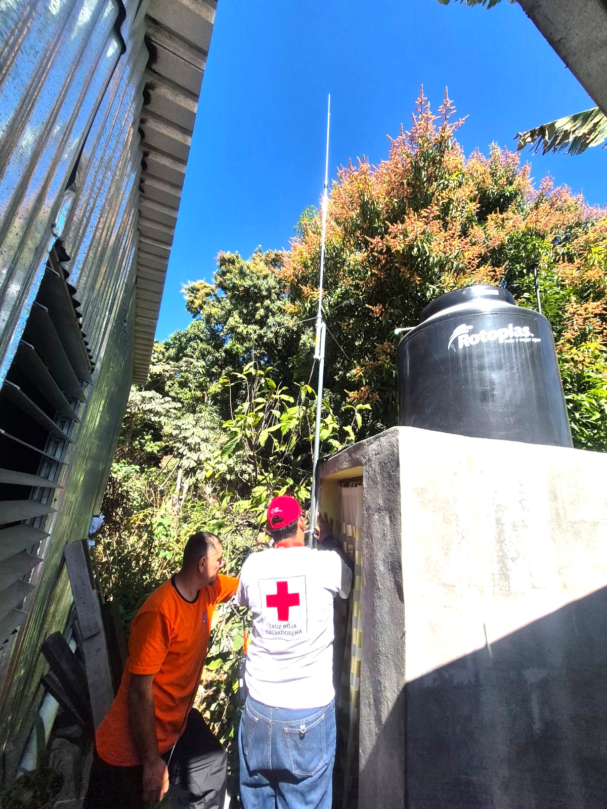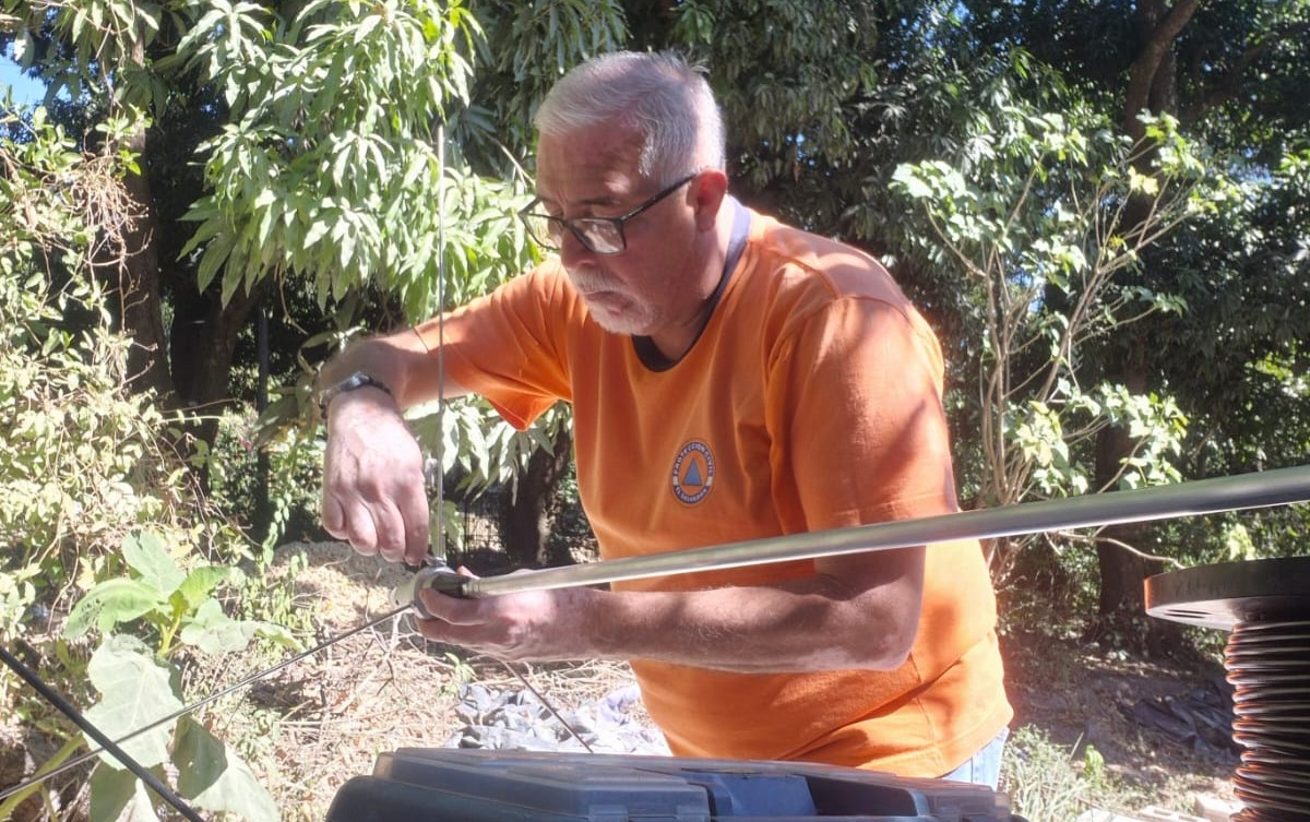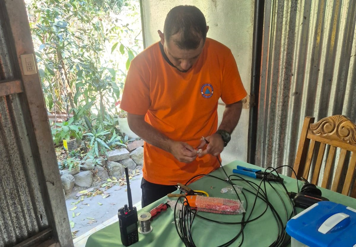 La intervención se llevó a cabo en la comunidad Apancino, ubicada en el distrito de San Salvador Este, donde tres técnicos especializados en radiocomunicación —dos de Protección Civil y uno de Cruz Roja— realizaron la programación e instalación de equipo VHF en el sistema radial institucional.