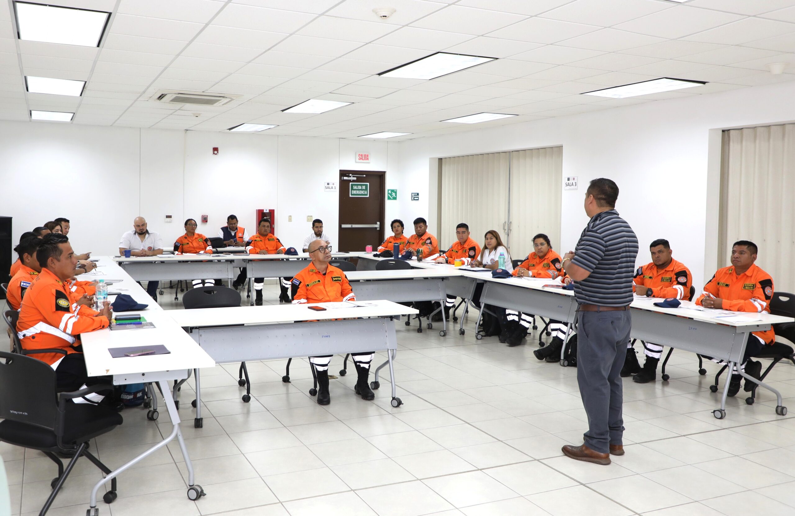 El Equipo Táctico de Emergencias (ETEM) de los Centros de Operaciones de Emergencia de Santa Ana, San Salvador, San Vicente y San Miguel participan en el curso “Centro de Operaciones de Emergencia: Organización y Operaciones”, una iniciativa orientada a fortalecer la coordinación y gestión ante situaciones de emergencia y desastres.
