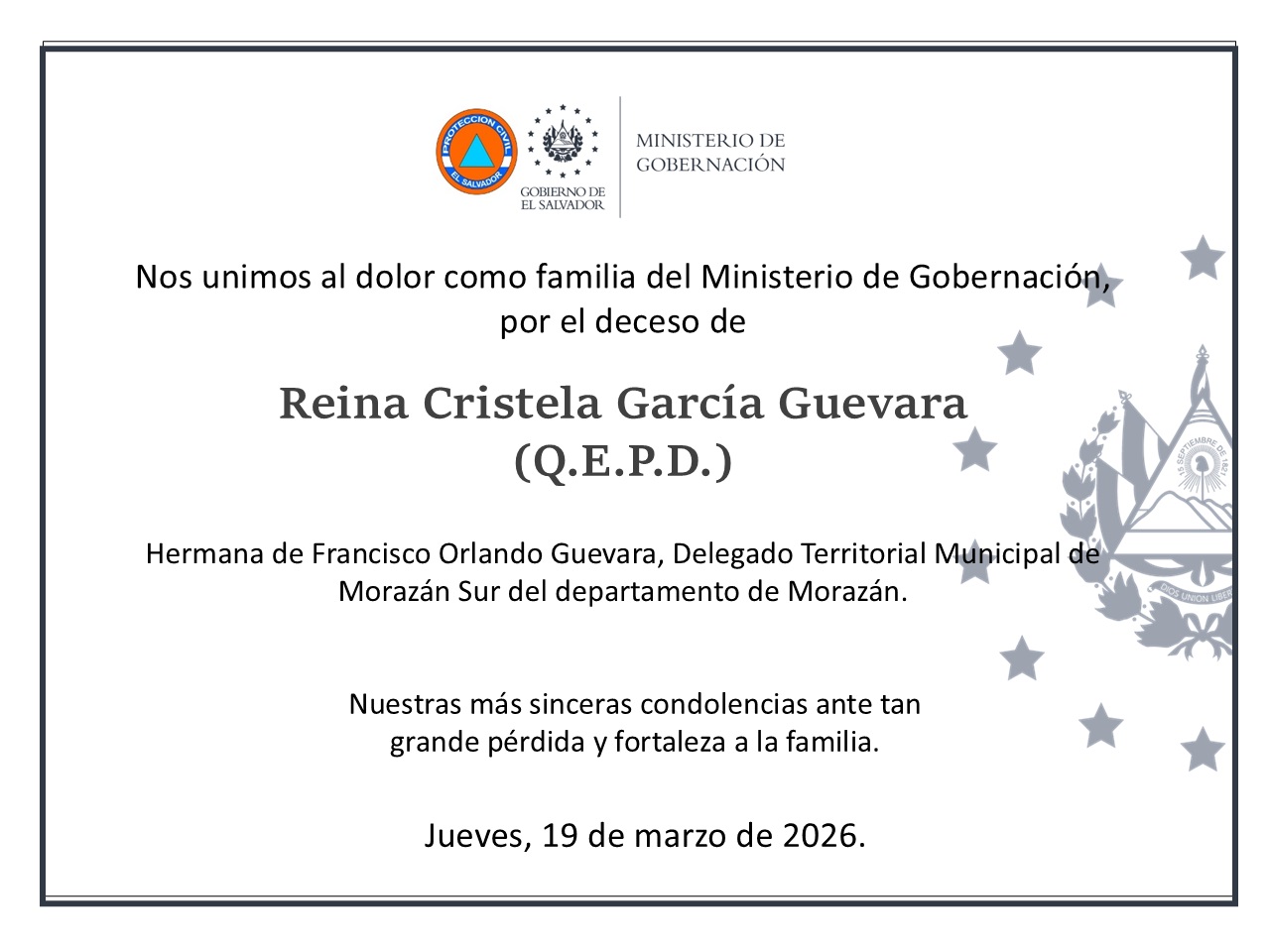 NUESTRO MÁS SINCERO PÉSAME, 19 DE MARZO 2026