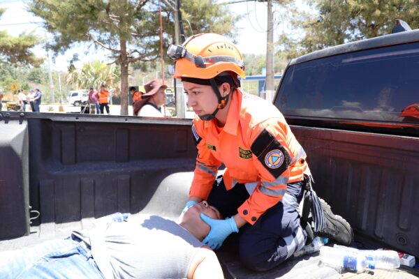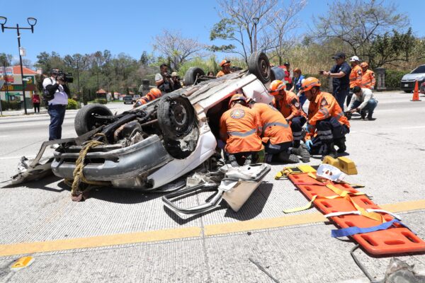 El ejercicio, que involucró la participación coordinada de diferentes instituciones de primera respuesta (Equipo Táctico de Emergencias de la Dirección General de Protección Civil, Policía Nacional Civil, Viceministerio de Transporte Terrestre, Servicio de Emergencias Médicas y Cuerpo de Bomberos), recreó un escenario realista de un percance de tránsito, permitiendo poner a prueba los tiempos de reacción, la atención prehospitalaria y los protocolos de rescate.