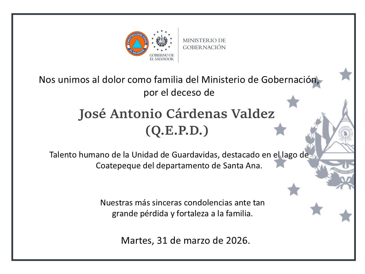 NUESTRO MÁS SINCERO PÉSAME, 30 DE MARZO 2026